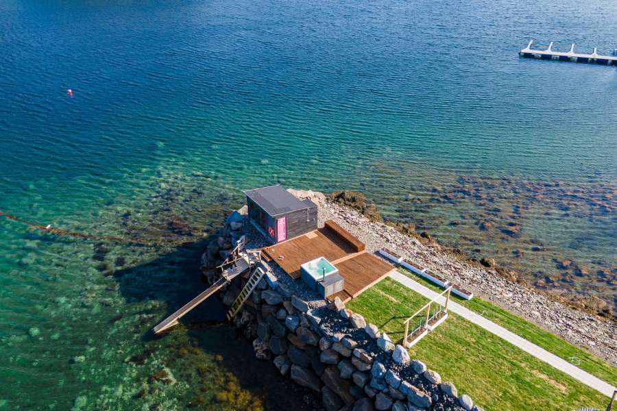 - Espace bien-être avec sauna, jacuzzi et vue sur le fjord