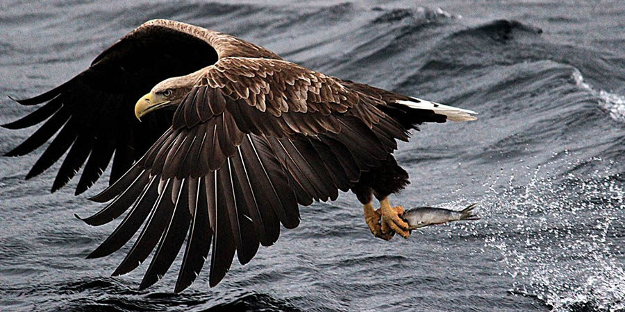In de namiddag stappen we aan boord voor een RIB-tocht naar het Trollfjord, een van de bekendste fjorden van de regio. Onderweg zweven vaak zeearenden boven de boot — een indrukwekkend schouwspel.